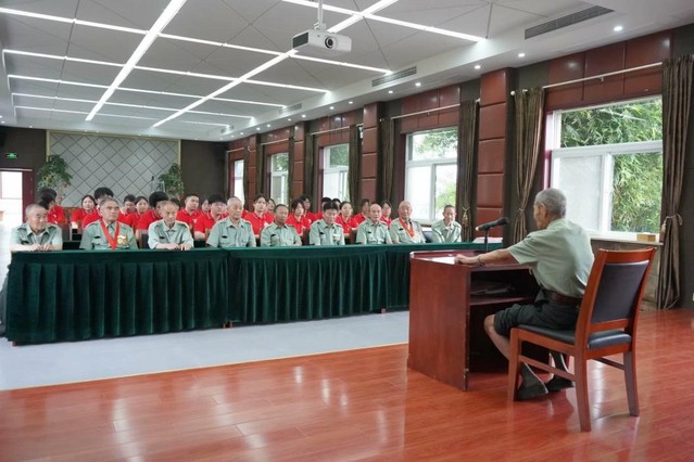 7月2日上午9:00,“合心知鄉”社會實踐團隊全體成員前往滁州市光榮院走訪其中的老黨員,并給他們送去了新鮮水果。首先,團隊成員們在負責人的帶領下前往老黨員們的住所。隊員們積極參與,打掃房間,并和老黨員們交流聊天。隨后,團隊成員前往會議廳,傾聽老黨員們講述他們的故事。第一位老黨員是一位參與淮海戰役的老兵,今年已經94歲了,17歲時就加入了軍隊。他向我們介紹了戰爭時期的相關事跡,并表達了對那段慘痛經歷的惋惜與對最終抗戰勝利的喜悅。第二位老黨員1967年報名參加抗戰,后期前往昆明參與戰爭;他向隊員們講述了當時歷史時期的故事,隊員們認真聆聽著,對他們的事跡由衷地感到敬佩。最后,全體成員與老黨員們進行合影留念。