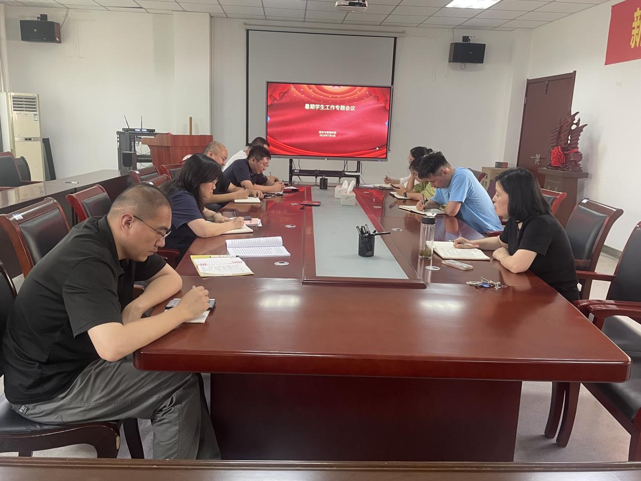 7月4日下午,經濟與管理學院在一期四棟會議室召開暑期學生工作會議,會議由經濟與管理學院黨委副書記夏丹青主持,學院全體輔導員參加。