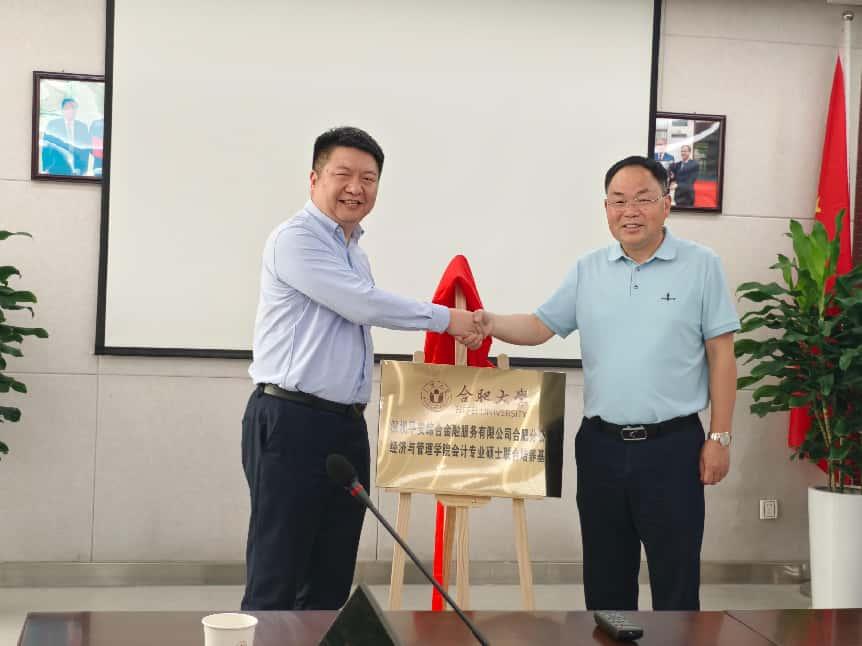 最后,由平安金服合肥分公司總經理張棟與合肥大學經濟與管理學院院長陳江華攜手,為合肥大學經濟與管理學院和深圳平安綜合金融服務有限公司合肥分公司共建研究生聯合培養基地揭牌,標志著雙方合作正式落地。此次會計專碩研究生實習基地掛牌儀式的順利舉行,不僅是合肥大學經濟與管理學院會計專碩點學科建設的重要里程碑,也是校企雙方聯動服務國家戰略、助力地方經濟發展的生動實踐。
