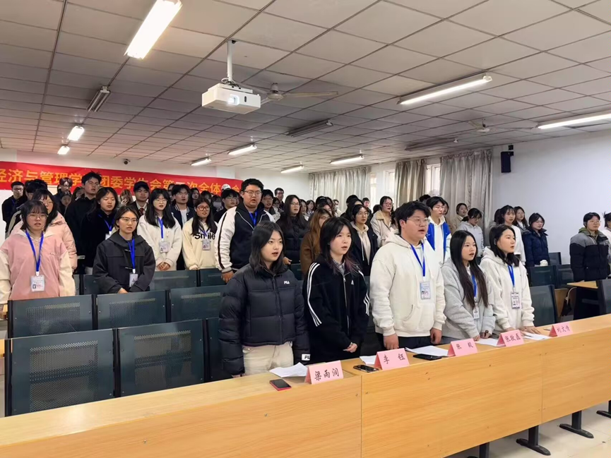 為進一步深化學生會成員對學院團委學生會職能的認識,推動學生會工作高質量發展,3月28日,合肥大學經濟與管理學院團委學生會第二次全體大會在合肥大學一期4棟107室順利召開。本次會議聚焦過去一學期的工作總結與反思,明確了未來發展方向,并對創新實踐與內部協作機制優化作出部署。 會議伊始,全體成員齊聲高唱《中國共產主義青年團團歌》,以飽滿的精神狀態開啟新學期的工作篇章。會上,團委學生會各負責人依次發言,深入剖析工作現狀并提出改進建議。 本次會議以“總結經驗、明確方向、凝聚共識”為主題,通過深入討論與交流,進一步明確了學生會工作的核心目標與行動路徑。會議強調,學生會需在服務同學、凝聚共識的基礎上,以創新為驅動,以改革為突破,持續優化內部協作機制,激發組織活力。同時,會議動員全體成員積極參與學科競賽,以實際行動推動學生全面發展與校園文化建設。