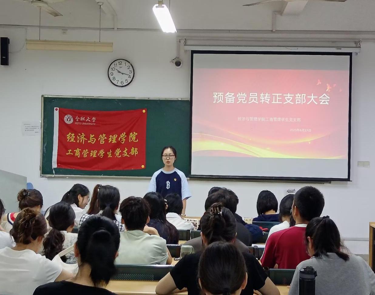6月27日,經濟與管理學院工商管理學生黨支部在博學樓C座101召開預備黨員轉正支部大會,支部全體黨員參加了此次會議。