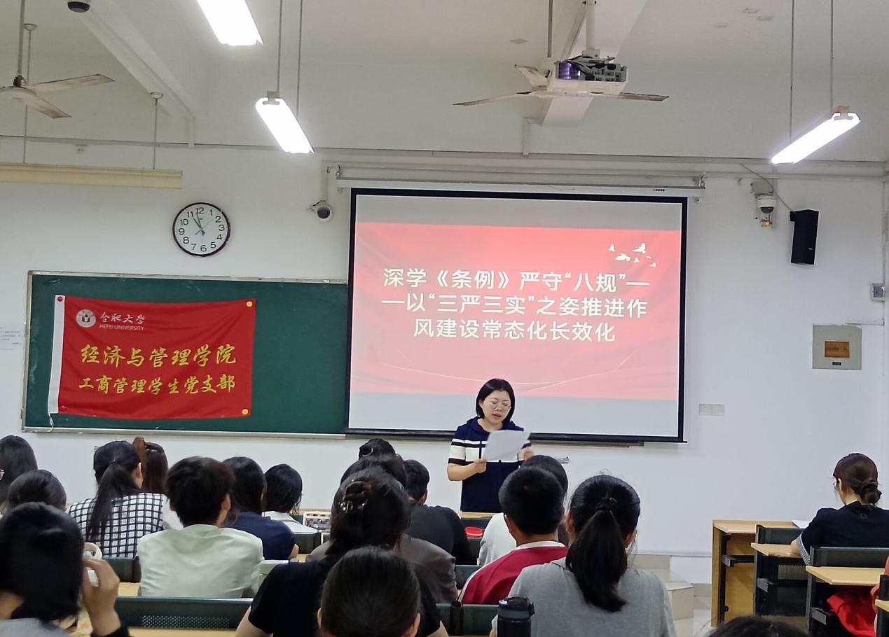 6月26日,經(jīng)濟與管理學院工商管理學生黨支部在一期4棟101教室開展深學《條例》嚴守“八規(guī)”----以“三嚴三實”之姿推進作風建設常態(tài)化長效化主題黨課,由經(jīng)濟與管理學院工商管理學生黨支部書記姚璇老師主講,支部全體黨員共同參加。