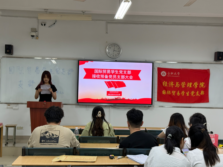 6月10日,經濟與管理學院國際貿易學生黨支部順利召開黨員大會暨接收預備黨員會議。