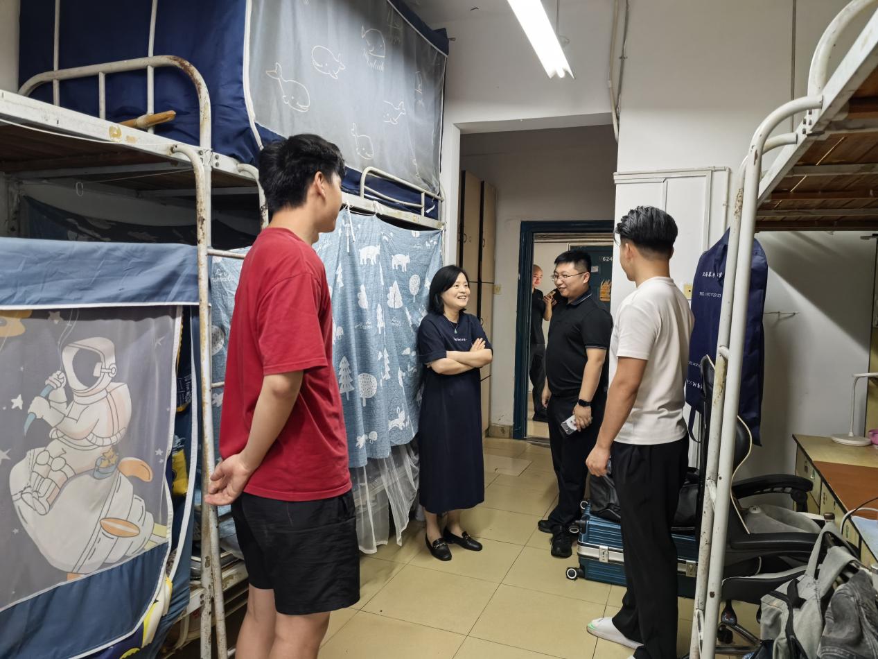 每到一間宿舍,學院領導與畢業生親切交談,詳細了解其畢業去向、就業情況及未來規劃。勉勵已就業同學“腳踏實地、建功立業”,鼓勵繼續深造的同學“潛心學術、勇攀高峰”,對暫未落實去向的學生,結合當前的就業形勢給予職業規劃指導。宿舍走訪過程中,輔導員同步檢查宿舍衛生安全,保障“文明、安全、有序”離校。