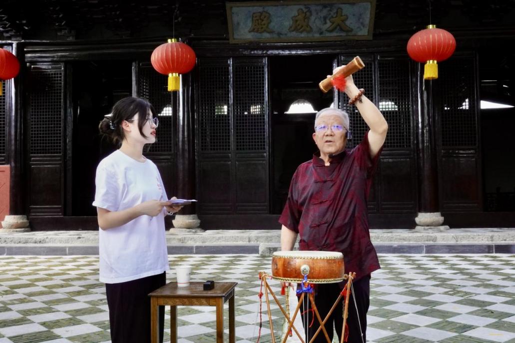 下午,團隊成員來到壽縣老文化館,專訪壽州大鼓省級項目非遺傳承人魏明華老先生和口技項目非遺傳承人李勛老師。同工藝傳承一樣,曲藝傳承也面臨著青黃不接的困境。一方面,曲藝行業從業者要培養耐力,要能靜下心來打磨作品;另一方面,非遺傳承需要全社會關注,學藝要從娃娃抓起,要讓更多曲藝作品和課程走進校園,讓孩子們從了解曲藝到熱愛曲藝,進而傳承曲藝。