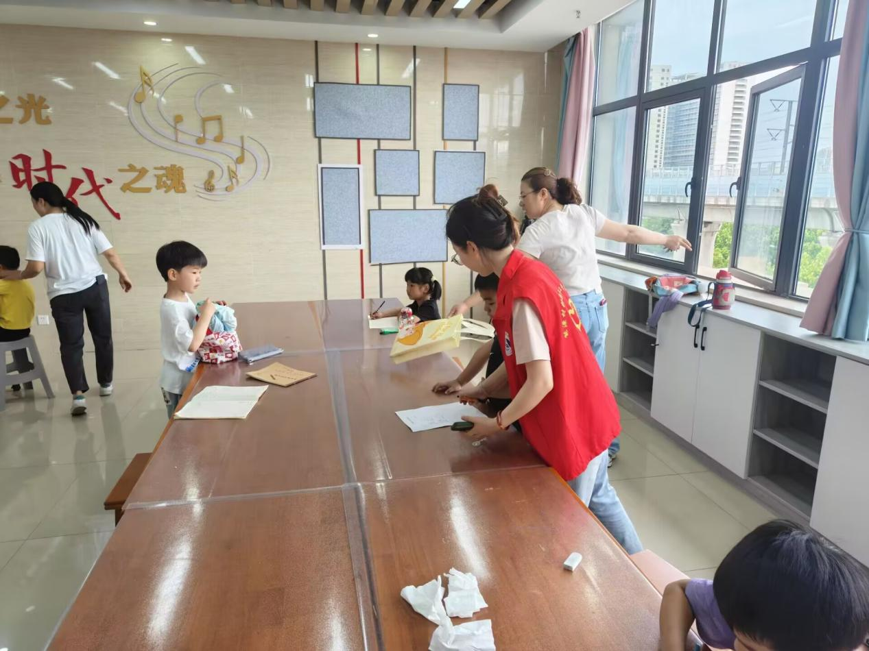 5月17日下午兩點半,在朝霞居委會內,來自合肥大學能源材料與化工學院的2名同學與朝霞居委會的美術老師一起教小朋友學習畫畫,激發了小朋友們對美術的熱情。