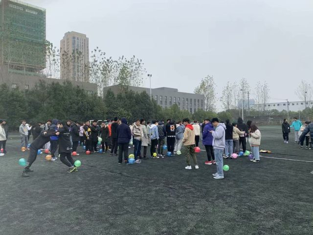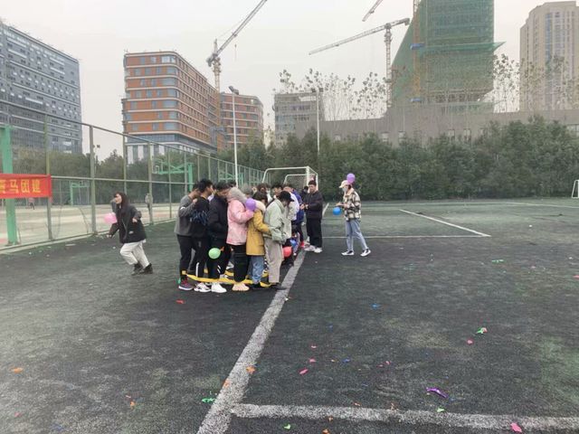 整個活動過程中,學員們被分成了六組,團建活動包括五個游戲板塊,分別為“翻滾吧,球球”、“疼痛吧,手足”、“穿梭吧,呼啦”、“轉動吧,紐帶”、“擁抱吧,卡片”采取積分制進行比賽為增強游戲的樂趣,在游戲過程中,每位選手的身上都綁上了氣球,增大游戲難度的同時充分調動了選手的積極性。游戲集趣味性與可玩性于一體收獲快樂的同時也放松了身心。雖然天氣溫度較低,但是活動現場氣氛火熱,同學們都積極參與,歡聲笑語不斷。