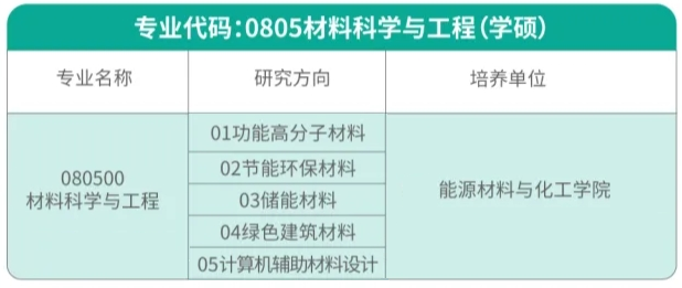 “材料與化工”專業學位碩士點招生代碼及開設的研究方向