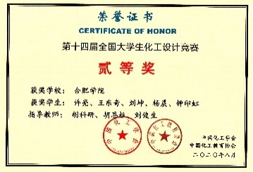 在此基礎上,本專業在培養學生化工創新和實踐能力上取得了諸多成效,參加全國化工設計大賽等各類大學生學科、技能競賽,獲得省級以上獎勵150余項。本專業建立了《化工熱力學》、《化工原理》線上線下以及化工過程模擬虛擬仿真6門校級金課。10個實驗微視頻上傳至合肥學院在線學習平臺,學生訪問量達2萬余次。出版了國家十三五規劃教材3本,校本教材10本。本專業教師獲國家級教學成果一等獎2項(2014年、2018年)。2018年通過國家工程教育認證專業,有效期限為20181-202312月。2019年獲批國家一流本科專業建設點。