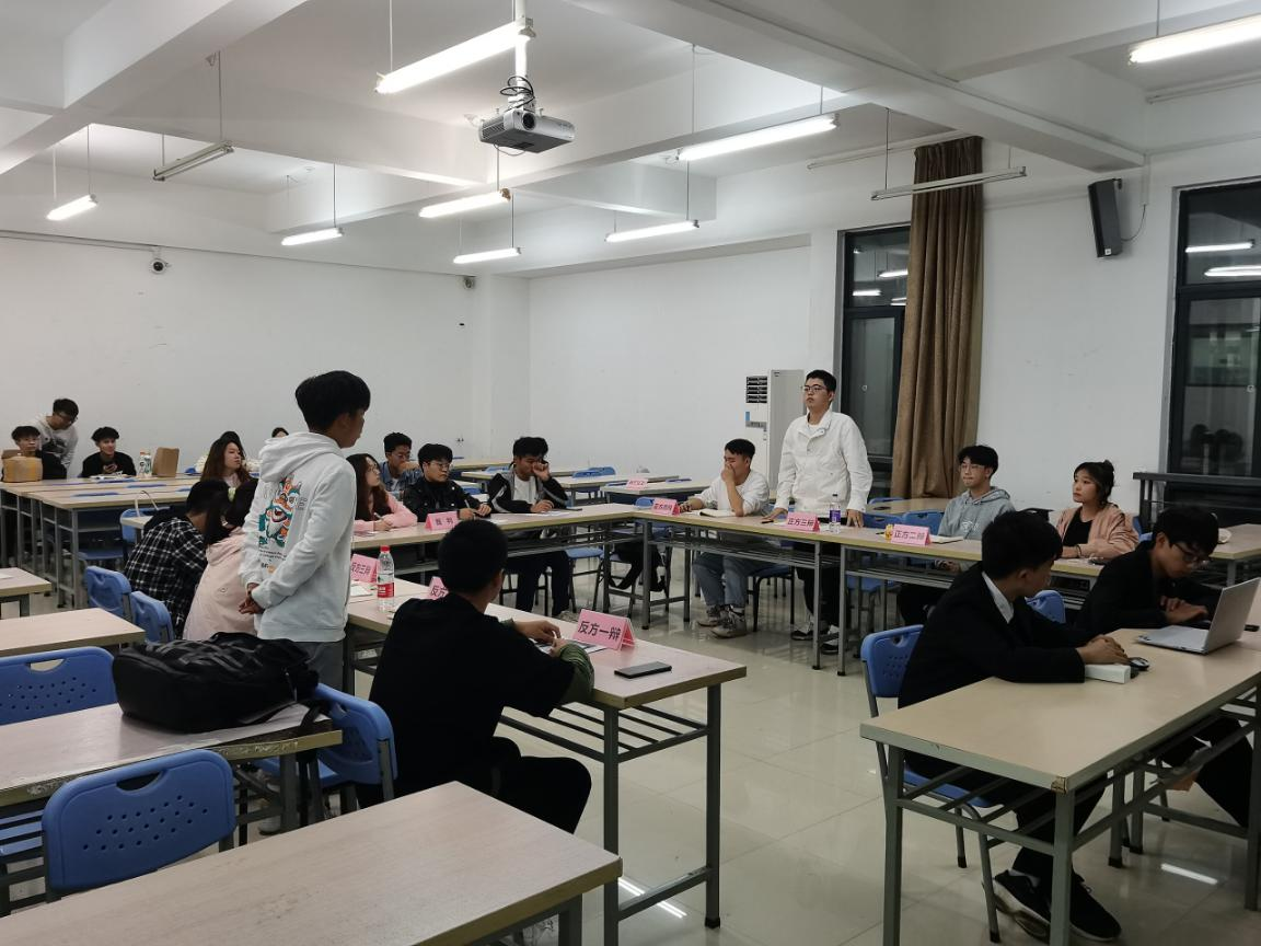 比賽伊始,現場可謂是“無聲之處勝有聲”,火藥味十足;帥氣的裁判,身著正裝,挺拔著身姿;辯手們更有著“戰士們”一往無前的氣勢。在主持人鏗鏘有力地宣講比賽事宜和雙方辯手進行簡潔的自我介紹后,比賽正式開始。兩隊就線上教育應不應該成為未來的教育趨勢的問題展開辯論。雙方選手在立論,駁立論,智辯等環節中據理力爭,引經據典,字字珠璣,使現場氣氛迅速升溫。在隨后的自由辯中20辯論隊辯手們咬緊牙關,在劣勢的情況下背水一戰。而21辯論隊對對方步步緊逼,力破對手防御,雙方唇槍舌戰。正方言語犀利,反方辯述簡明有力,雙方你來我往,互不相讓的激烈辯論給聽眾帶來了一場視聽盛宴。而經過這場充滿硝煙的角逐,最終以21辯論隊在本次比賽中勝出。