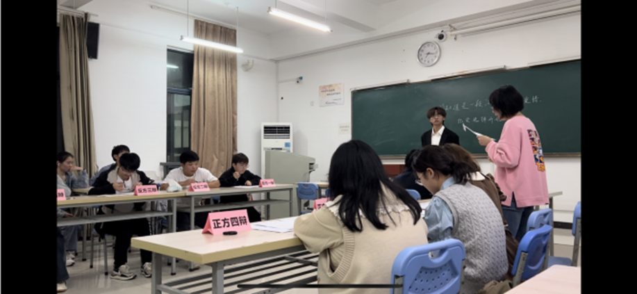 為了豐富學生們的課余生活,10月23號晚上七點,在能源材料與化工學院學生會學習部和各班委安排組織下,我院在生化樓201如期舉辦了“一二?九”辯論賽選拔半決賽。擔任本次辯論賽的評委是學習部前任部長席賽文,學習部現任部長梁家惠、張鈺穎,對外交流部部長王蕾茹。正方為“你們說的都隊”反方為“你在跟我作隊”。
