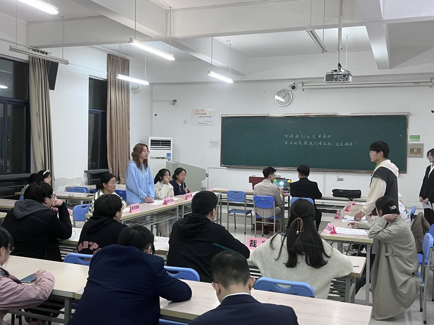 本次辯論賽的辯題是;如果我們注定要面對生活中的荒謬,我們要反抗,還是接受?正方認為要反抗,反方認為要接受。