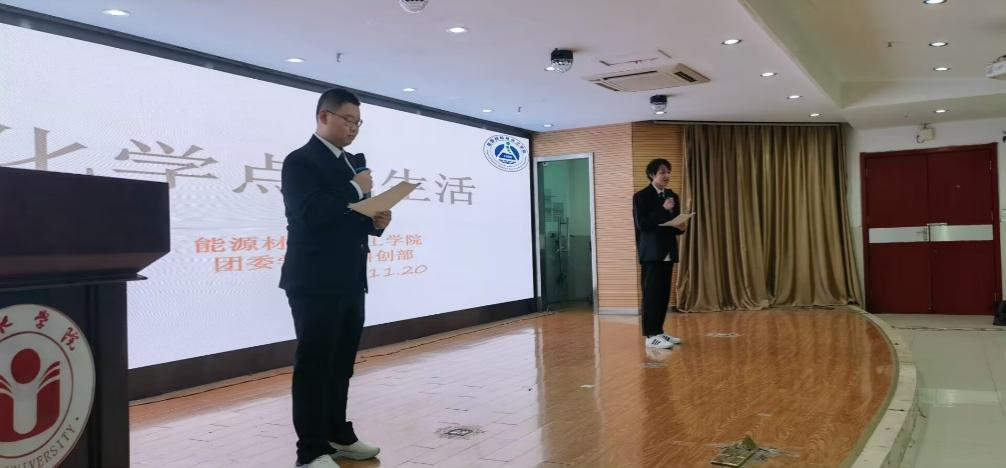 11月20日晚七點整,由能源材料化工學院院學生會科創(chuàng)部主辦,院學生會各部門協(xié)辦的“化學點亮生活”大賽決賽在大學生活動中心報告廳拉開幕。本次比賽由能源材料與化工學院主席團成員王振鑫、彭澤宇、魏嘉琪、朱海濤、張小輝擔任評委