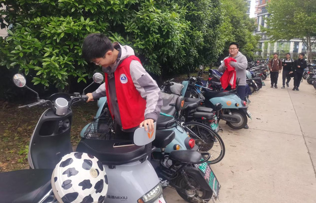 志愿者們維持宿舍樓車(chē)輛秩序,做好高峰時(shí)段的車(chē)輛的停放工作。他們溫馨提示同學(xué)把車(chē)??吭谒奚針情T(mén)口的兩邊,以免堵塞宿舍門(mén)口,影響同學(xué)出入,并提醒停車(chē)同學(xué)保持車(chē)輛整齊,停放到合適位置。活動(dòng)過(guò)程中熱心幫助有需要的同學(xué)規(guī)范停車(chē)。