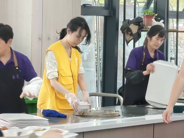 在食堂秩序維護方面,志愿者們協助工作人員清理餐桌、回收餐具,幫助維護了食堂的整潔與衛生,更加理解了食堂工作人員的辛苦。