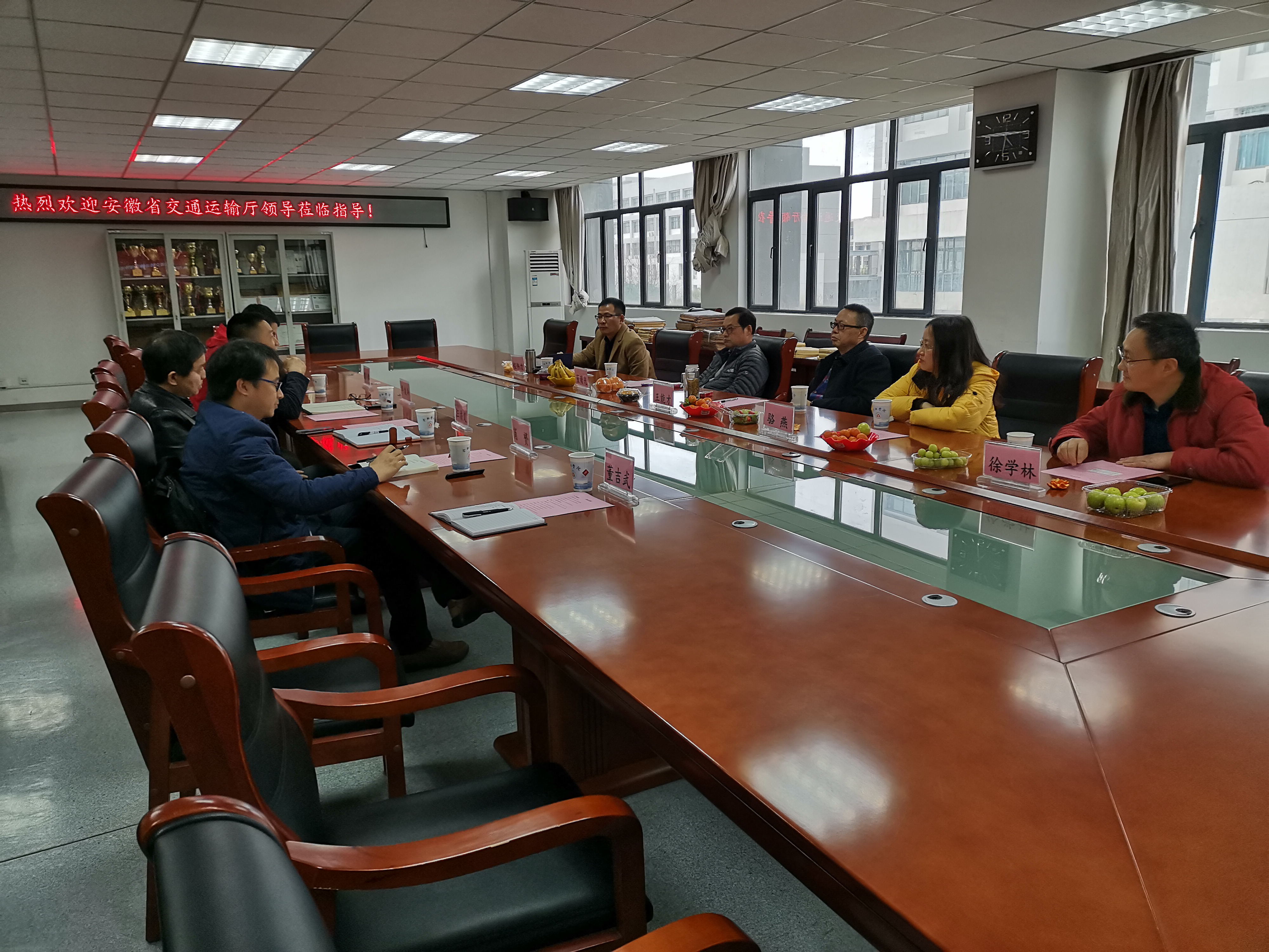2月27日下午,安徽省交通運(yùn)輸廳科技處王能才處長一行來我院調(diào)研,校科技處處長汪潘義、城市建設(shè)與交通學(xué)院院長華建兵以及肖赟、梁子君、董吉武等教師參加調(diào)研。