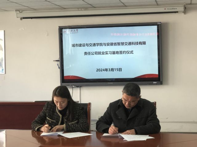 會上,張永軍書記首先向來賓表示熱烈的歡迎,并從師資力量、本科生規模、碩士點設置、產教融合發展和實驗室建設等方面對城建學院做了簡要介紹,并對接下來就業實習基地推進計劃提出了自己的建議。隨后,安徽智慧交通科技有限責任公司品牌總監萬忠儒表示,公司目前在淮南、蕪湖、安慶、儀征設立了工廠,產品覆蓋智慧橋梁、智慧交安、智慧機電等;新能源方向上,在合肥包河區設立了新能源裝備制造公司,專注于新能源電池PACK以及新型智能化充換電站的研發和生產;在人才需求方面,希望與城建學院加強學生實習就業方面的合作。緊接著,合肥大學黨委學生工作部部長丁增云表示,希望加強企業技術人員與高校教師之間的交流,實現校企資源共享,通過開展招聘會、走訪企業等形式將就業實習基地建設落到實處。最后,城建學院黨委書記張永軍代表學院與安徽智慧交通科技有限責任公司簽訂了共建就業實習基地協議。