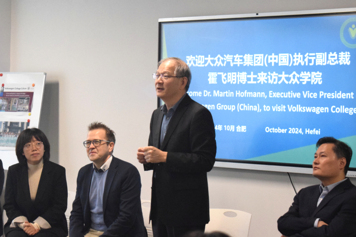 王其東對霍飛明一行表示熱烈歡迎。他表示,大眾學院是合肥大學與大眾汽車集團共建的服務地方經(jīng)濟發(fā)展的示范性合作項目。當前,學校深入推進以大眾學院為首的雙元制現(xiàn)代產(chǎn)業(yè)學院建設,積極探索應用型人才培養(yǎng)新模式,希望雙方進一步加強溝通交流,在人才培養(yǎng)、科學研究等方面開展務實合作。霍飛明感謝學校的熱情接待,他表示大眾集團重視與合肥大學的合作,希望通過本次訪問加深對雙方合作項目的了解,進一步推動校企合作與人才培養(yǎng),為新能源汽車行業(yè)的發(fā)展培養(yǎng)更多優(yōu)秀人才。