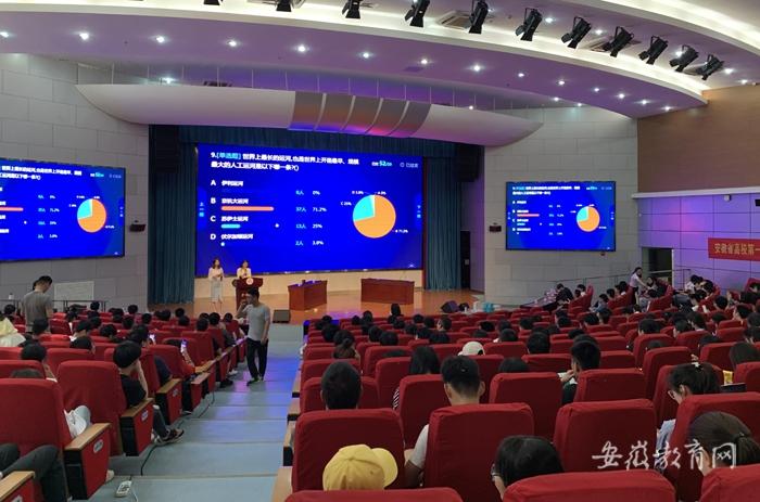 正式比賽環節中還穿插有游戲互動環節,不僅場上選手和現場觀眾可以作答,場外同學也可以通過學習通直播的方式發彈幕參與互動。
