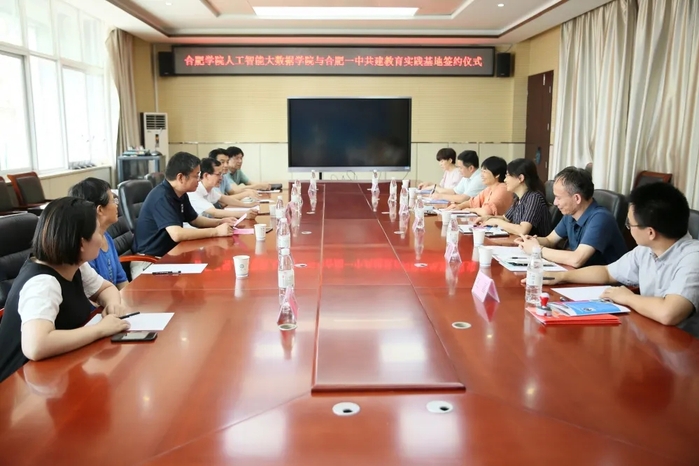 8月18日上午,合肥學院副校長陳秀率人工智能與大數據學院黨委書記牛欣、院長檀明、副院長余海峰、數學與統計系主任王磊、康素玲副教授一行,前往合肥一中簽訂“合肥學院人工智能大數據學院與合肥一中共建教育實踐基地”協議,并為“教育實踐基地”掛牌。合肥一中校長封安保、副校長方小培、高一年級部主任助理徐明星、數學學科主任吳建平、實驗室主任吳曉峰、優秀教師代表劉娟出席了簽約揭牌儀式。簽約儀式由方小培主持。