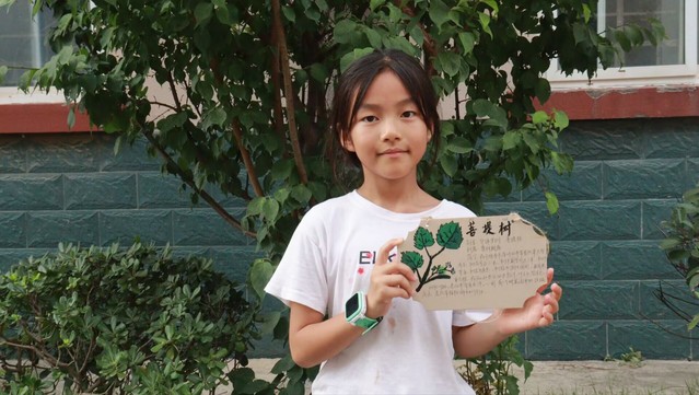 綠色發(fā)展作為新發(fā)展理念的重要組成部分,以人與自然的和諧共生為價值取向。7月7日,在實地走訪和植物核對階段,團隊成員帶領孩子們走出教室,對校園中的植物進行逐一查詢、細致比對后確定了校園中有紅葉石楠、菩提、月季、樟樹、桂花等特色植物。被問到最初策劃這個活動的原因時,團隊成員徐錦瑤說道:“在‘綠水青山就是金山銀山’的今天,植物名牌不僅可以作為一種直觀的形式幫助學生了解校園內(nèi)的植物種類,也可以帶著孩子們美化校園環(huán)境。