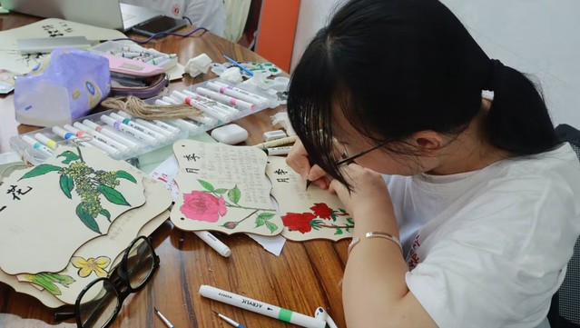 在隨后植物圖案的繪制過程中,團隊成員們揮動畫筆,將校園里的自然之美繪制在木板之上,在植物名牌的繪制過程中進一步加深人與自然的聯(lián)系。繪制結束后,團隊成員將每個植物的“身份信息”逐一寫在對應的“身份證”上。