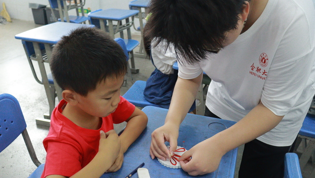 7月6日,合肥大學教育學院“同筑鄉村夢,共’育’振興果”志愿服務隊暑期“三下鄉”社會實踐活動在合肥市小廟鎮蜀山行知學校如期展開。教師王欣悅為學生帶來了一場精彩紛呈的中國結課程,本次課程通過對傳統手工藝的傳承,增進小朋友們對中華優秀傳統文化的了解。 課程伊始,教師向小朋友們詳細介紹了中國結的歷史淵源和文化內涵。中國結,作為一種古老而精美的編織藝術,不僅代表著中華民族的智慧和巧思,更蘊含著團結、和諧、美好的寓意。在教師對不同中國結聲情并茂的講解中,小朋友們被這一傳統藝術深深吸引,迫不及待地準備制作一個屬于自己的中國結。