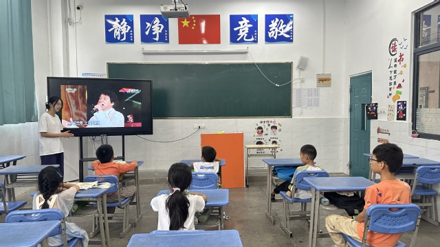 為深入學(xué)習(xí)貫徹黨的二十大精神,培育青年學(xué)生深厚的家國(guó)情懷,深深扎根人民,始終服務(wù)人民。7月5日下午,合肥大學(xué)教育學(xué)院“同筑鄉(xiāng)村夢(mèng),共‘育’振興果”志愿服務(wù)隊(duì)于合肥市小廟鎮(zhèn)蜀山行知學(xué)校開展了暑期“三下鄉(xiāng)”社會(huì)實(shí)踐活動(dòng),老師魯?shù)つ莺凸G寧為同學(xué)們帶來了“手語唱紅歌,無聲寄華夏”主題課程。 課程伊始,老師向同學(xué)們提問關(guān)于手語的知識(shí),激發(fā)同學(xué)們的興趣,并簡(jiǎn)單地介紹了手語的概念、在實(shí)際生活中的運(yùn)用及歷史文化背景。隨后,老師向同學(xué)們展示基礎(chǔ)手語表達(dá)方式的圖片并播放視頻《國(guó)家》,讓同學(xué)們感受歌曲的旋律、節(jié)奏,體會(huì)歌曲的思想內(nèi)涵。接著,學(xué)生跟隨老師的手勢(shì)進(jìn)行模仿和練習(xí),學(xué)習(xí)手語操的基本動(dòng)作和技巧。