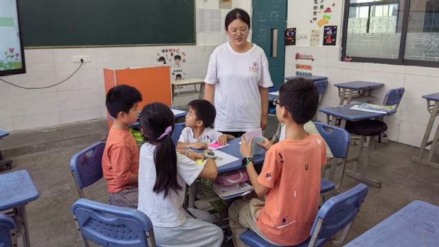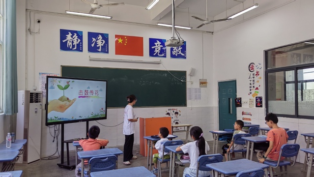 7月5日,合肥大學教育學院“同筑鄉村夢,共’育’振興果”志愿服務隊“三下鄉”社會實踐活動的第一節課在合肥市小廟鎮蜀山行知學校拉開帷幕,本節課是由教師胡雨晴帶來的主題為“價值拍賣會”的團體心理輔導活動,本次活動旨在通過創新的教育方式,引導學生們深入思考和探索自己的價值觀,并在互動中增進對彼此的了解。 活動伊始,為了讓學生們迅速進入狀態,教師精心策劃了擊鼓傳花小游戲。學生們圍成一圈,隨著鼓聲的響起,一朵象征友誼與團結的“花”在學生們手中快速傳遞。每當鼓聲停止,持“花”者需上臺進行自我介紹并接受一個小挑戰,這不僅鍛煉了學生的表達能力,也為接下來的課程主體內容“價值拍賣活動”營造了輕松愉快的氛圍。