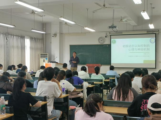 報告會上,李楠教授首先從“認知控制”的概念入手,引出動態認知控制的基本概念和行為現象,并結合實例,讓師生們對動態認知控制有了更為直觀的理解。隨后,李楠教授通過介紹動態認知控制心理機制的傳統主流觀點,進一步就近年來的研究證據,提出動態認知控制的新心理機制,并詳細闡述了驗證動態認知控制新心理機制的具體實驗步驟與操作方法。李楠教授還就當前該領域的研究熱點和難點進行了深入剖析,為我院師生指明了未來的研究方向。
