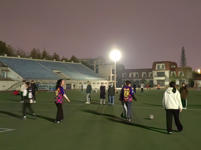 中場休息結束后,下半場比賽開始。下半場的比賽,我院女足雖仍不占優勢,但還是堅持進攻,希望進球來扭轉比賽。可對方球員的進攻十分猛烈,這使我院女足隊員不得不轉攻為守,只能竭力防護。就在比賽只剩一分鐘并且全場都認為我院女足隊員放棄的時候,我院張旋球員頂住壓力,踢進了一球!并且此球飛越了大半個比賽場地直接成功地踢進球門,使得全場人員都為她歡呼!最終,我院以五比一輸了全場比賽。