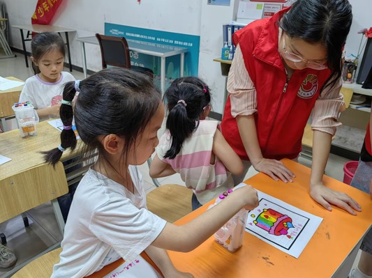 5月19日,教育學院陽光心理志愿服務隊前往家園社區為小朋友們開展以“情緒萬花筒”為主題的心理健康活動。本次心理健康活動旨在幫助孩子們認識自己的情緒、接納自己的情緒。 在活動開始之前,志愿者們先帶領小朋友進行“搶板凳”的熱身小游戲,隨著志愿者播放的音樂,小朋友們圍繞事先擺放好的板凳繞圈,音樂停止時搶板凳直至剩下最后一人,小朋友們熱情高漲,積極參與。 熱身小游戲結束后,活動正式開始。志愿者讓小朋友們在情緒蛋糕上涂色,用畫筆表達自己的情緒,小朋友們都認真作畫,用不同的顏色代表不同的情緒。 本次活動設計的重點在于幫助孩子感受和分享更多的情緒體驗,通過圖畫形式的活動,讓孩子感受情緒的產生過程,知道面對不同的事件會產生不同的情緒,了解自己的情緒特點和表現,為后續分析情緒產生的原因和進行情緒調節做好準備。