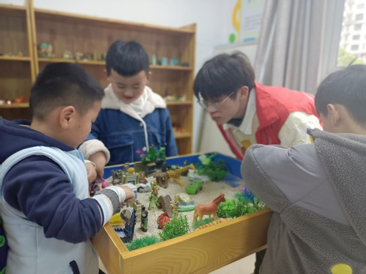 3月20日下午,教育學(xué)院陽光心理志愿服務(wù)隊前往欣園社區(qū)為小朋友們開展以“一沙一世界,一盤一未來”為主題的沙盤體驗活動。 在活動過程中,心理志愿服務(wù)隊成員首先讓小朋友們選取自己喜歡的沙具并按照自己喜歡的方式擺放,其次作為觀察者和陪伴者的身份,幫助小朋友們通過創(chuàng)造沙盤世界、重建沙盤世界等過程,運用沙具發(fā)揮自主想象創(chuàng)造沙盤,使小朋友們的內(nèi)心世界和外界生活得以逐步呈現(xiàn)和自我展示。小朋友們樂在其中,紛紛進行了心與心的交流與感悟,充分體驗沙盤游戲帶來的魅力。