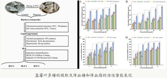 團隊針對藍莓葉多糖的作用機制和應用價值進行了深入探索,進一步揭示了藍莓葉多糖的降血糖和降血脂的活性潛能。相關研究成果以“A novel polysaccharide from blueberry leaves: Extraction, structural characterization, hypolipidemic and hypoglycaemic potentials”為題,發表在《Food Chemistry》上(DOI:10.1016/j.foodchem.2024.140493)。王儲炎為通訊作者,合肥大學生物食品與環境學院為第一完成單位。