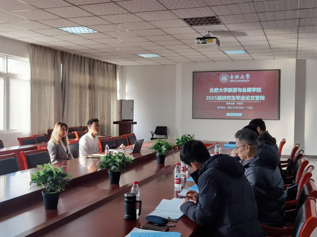 2024年12月20日,合肥大學旅游與會展學院旅游管理碩士畢業論文答辯在一期2號樓學院會議室隆重舉行。學院邀請到了來自安徽大學的李東和教授、合肥工業大學的張鑫副教授、安徽省中國旅行社的丁志和總經理以及我院的碩士研究生導師王乃舉和劉慶廣兩位教授共同擔任答辯評委。參加本次答辯的研究生分別是來自烏克蘭和柬埔寨的留學生,2024級的多位研究生新生也到場觀摩。