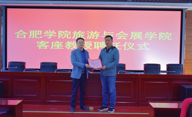 講座伊始舉行了張德欣教授為我院客座教授及旅游管理專業行業導師的續聘儀式,旅游與會展學院劉力院長主持了聘任儀式。