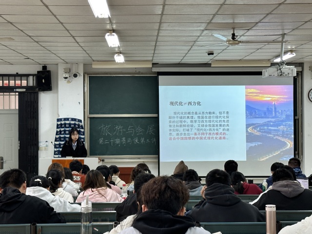 11月22日,旅游與會(huì)展學(xué)院第二十屆青年馬克思主義者培訓(xùn)工程第三講于博學(xué)樓A座107教室順利開展。參與此次培訓(xùn)的有旅游與會(huì)展學(xué)院團(tuán)委第二十屆學(xué)生會(huì)全體成員以及各班班長和團(tuán)支書。本次培訓(xùn)由旅游與會(huì)展學(xué)院第一黨支部學(xué)生黨員朱燦韻主講。