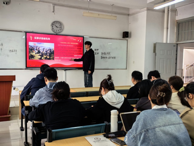 4月18日,為了讓支部學生更好的了解三灣改編這段歷史,了解人民軍隊的建立歷程,旅游與會展學院學生第一黨支部于一區博學樓A座304教室開展黨史宣講會。