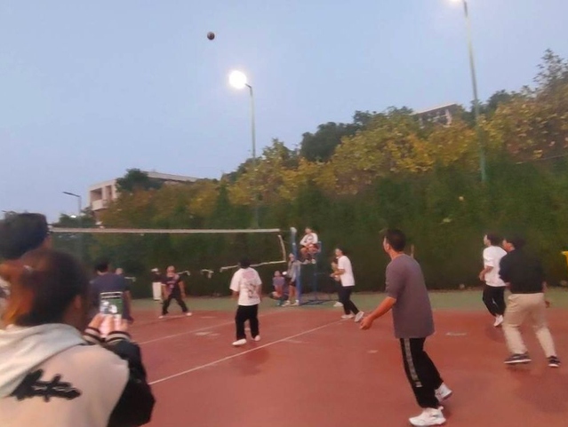 當(dāng)一聲清脆的哨響拉開比賽的序幕,運動員們展開了激烈的比拼。隨著生物院鏗鏘有力的發(fā)球,全場氣氛瞬間被引燃,加油聲、吶喊聲絡(luò)繹不絕。彩繩飛揚,排球場上一派緊張熱烈的歡騰景象。即使在你來我往的防守與發(fā)球下,學(xué)院以較小分差落后于教育學(xué)院,但學(xué)院的男排隊員們依舊情緒高漲,在重整旗鼓過后以驚險的分?jǐn)?shù)差距追上,在加時賽取得第一場比賽的勝利。隨著第二場比賽開始,各院男排隊員陸續(xù)入場,緊張的氛圍彌漫在賽場上。當(dāng)哨聲的再度響起,男排隊員們沉著冷靜,積極應(yīng)對,在教育院分?jǐn)?shù)的步步逼近下調(diào)整心態(tài),穩(wěn)定發(fā)揮,順利拿下整場比賽的勝利。