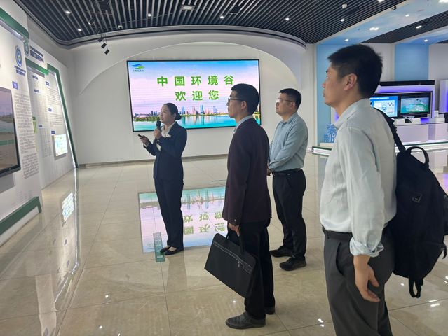 生物學院一行受到蜀山經開區管委會社會事務處處長陳澍、副處長朱江的歡迎,并在工作人員帶領下參觀了位于環境大廈一樓的中國環境谷展廳,對安徽省環境行業發展歷史、支柱產業和重點企業有了進一步了解。
