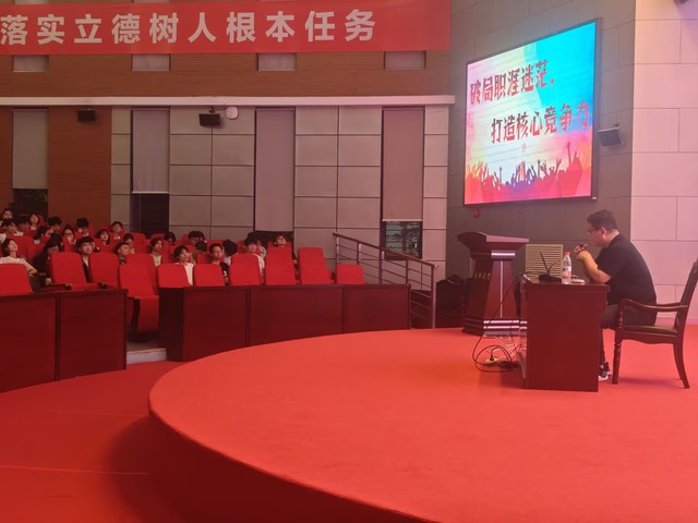 2025年5月13日晚6時30分,生物食品與環境學院“破局職涯迷茫,打造核心競爭力”主題講座于圖書館A報告廳舉行。活動由學院黨委副書記晉松、學生工作辦公室主任陳玲主持,特邀安徽安科生物工程(集團)股份有限公司人力資源經理王龍擔任主講,為全體大三學生及生物制藥專業新生帶來一場職業發展導航盛宴,現場反響熱烈。