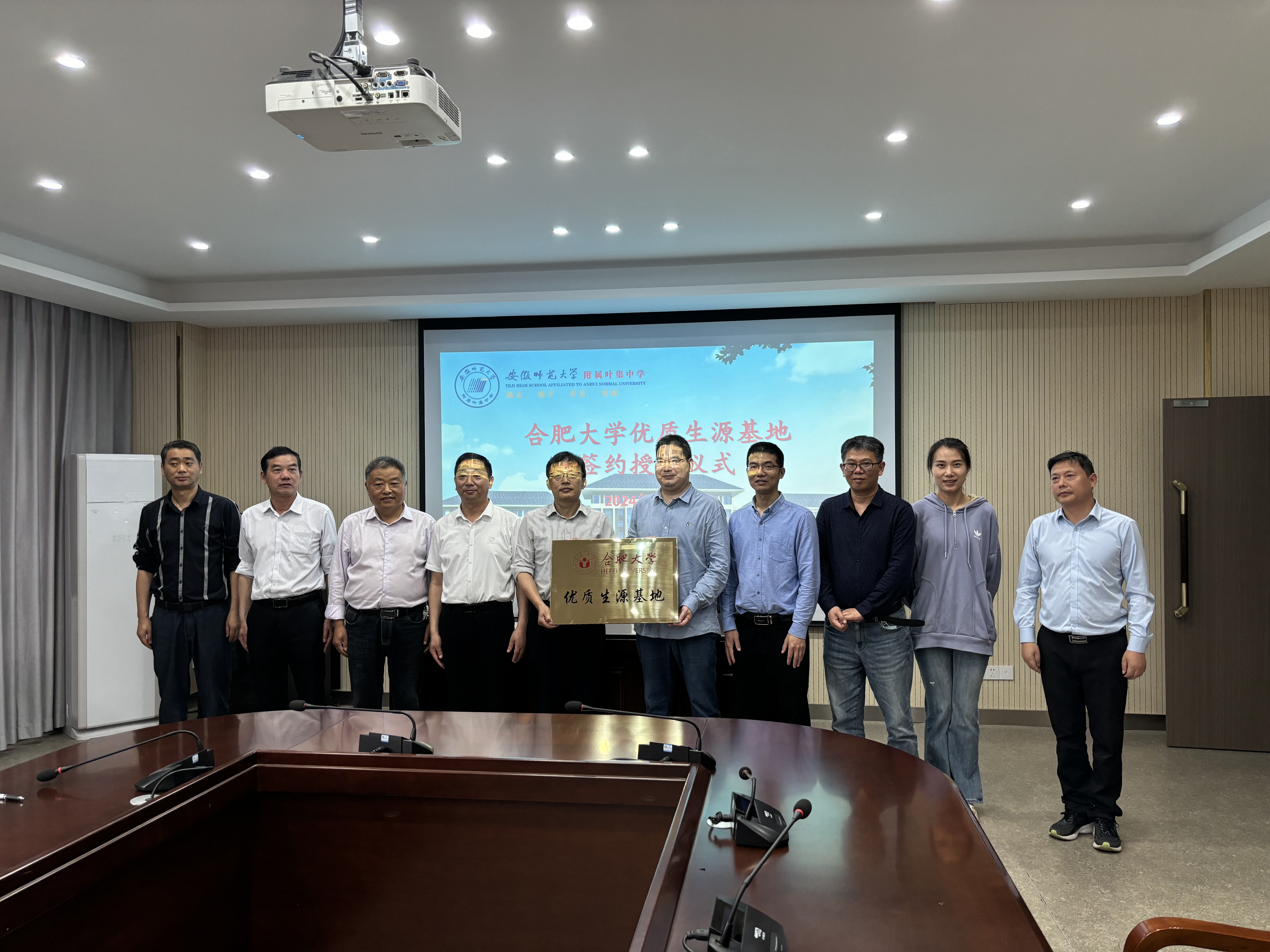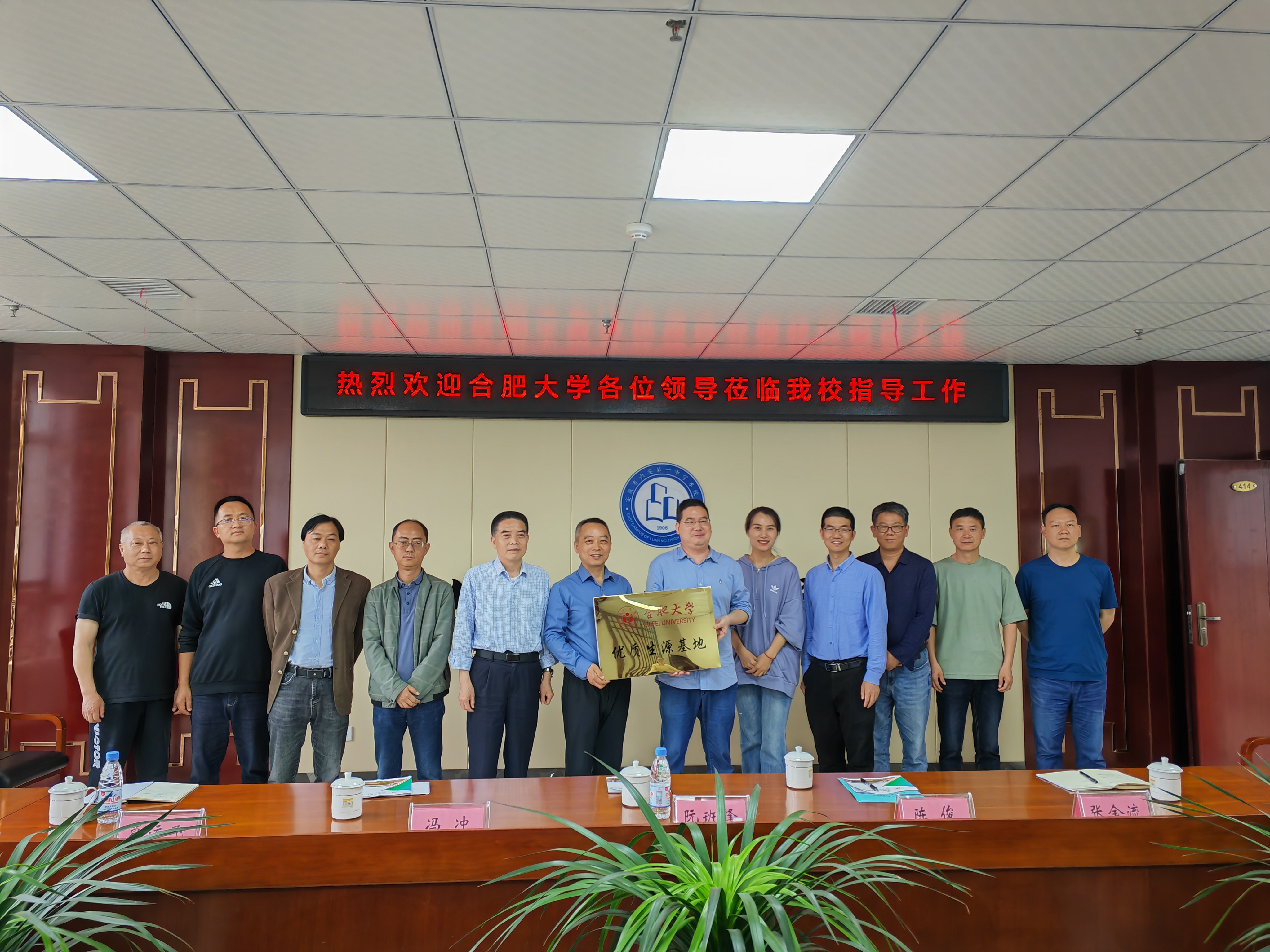 在安師大附屬葉集中學,阮班鋒就我院在人才培養、教學科研、科技創新、專業設置等方面的特點與優勢進行了詳細介紹,希望通過共建優質生源基地的方式,進一步加強兩校之間的交流與合作。安師大附屬葉集中學校長章志學表示,合肥大學授予安師大附屬葉集中學“優質生源基地”稱號,不僅是對學校辦學成果和人才培養的充分認可,更為兩校今后深入開展交流與合作奠定了堅實的基礎。座談會后,雙方簽署《合肥大學優質生源基地共建協議書》,并舉行了合肥大學和安師大附屬葉集中學“優質生源基地”授牌儀式。