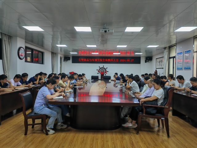 為貫徹落實黨的二十屆三中全會精神,推動學院高質量發展,保障新學期工作有條不紊的開展,8月27日,生物食品與環境學院組織開展了2024年度秋季學期第一次全院教職工大會,學院黨政領導班子及全體教師參會。會議由學院副院長(主持工作)阮班鋒主持。