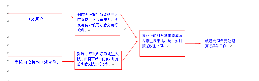 申請(qǐng)安裝辦公電話的用戶,需經(jīng)本部門(或本單位)負(fù)責(zé)人同意,由經(jīng)辦人到校辦行政科領(lǐng)取或進(jìn)入校辦網(wǎng)頁(yè)下載《合肥大學(xué)固定電話登記表》表格、填寫相關(guān)電話業(yè)務(wù)登記表格,并加蓋部門公章后,送回校辦行政科,由行政科對(duì)其填報(bào)內(nèi)容進(jìn)行審核,符合裝機(jī)、移機(jī)等相關(guān)業(yè)務(wù)條件,再按學(xué)校統(tǒng)一配號(hào)原則予以配號(hào)后統(tǒng)一報(bào)至鐵通公司,由該公司按所報(bào)內(nèi)容要求安排處理。
