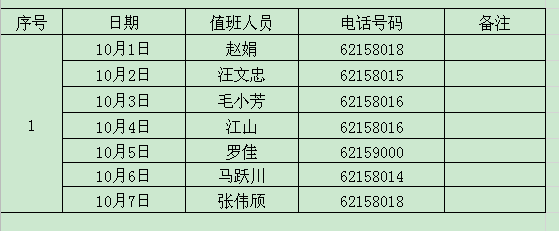 合肥學院國慶節假期辦公室值班安排表