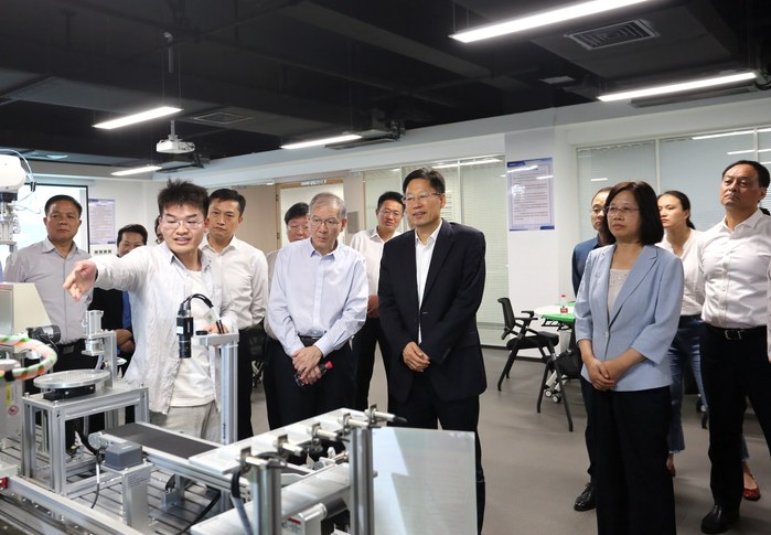會(huì)前,劉玉杰一行先后參觀了大眾學(xué)院智能制造產(chǎn)教融合實(shí)踐中心、多模態(tài)工業(yè)設(shè)備狀態(tài)監(jiān)測(cè)實(shí)驗(yàn)室及中德合作成果展廳等,詳細(xì)了解學(xué)校學(xué)科建設(shè)、人才培養(yǎng)、學(xué)生就業(yè)等情況。
