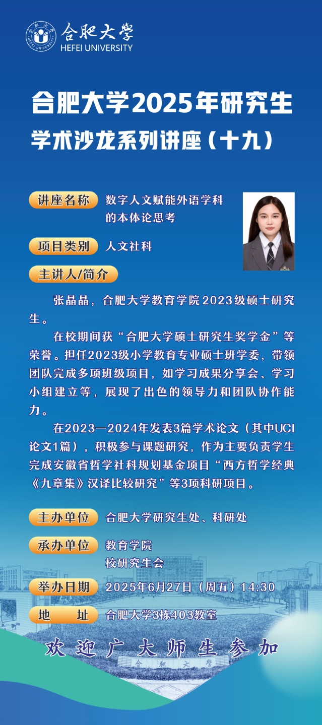 合肥大學2025年研究生學術沙龍系列講座(十九)