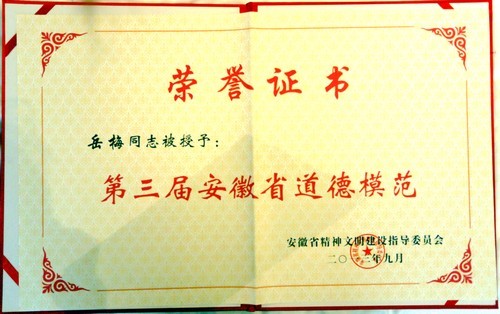 我院碩士生導師岳梅教授榮獲全省道德模范稱號