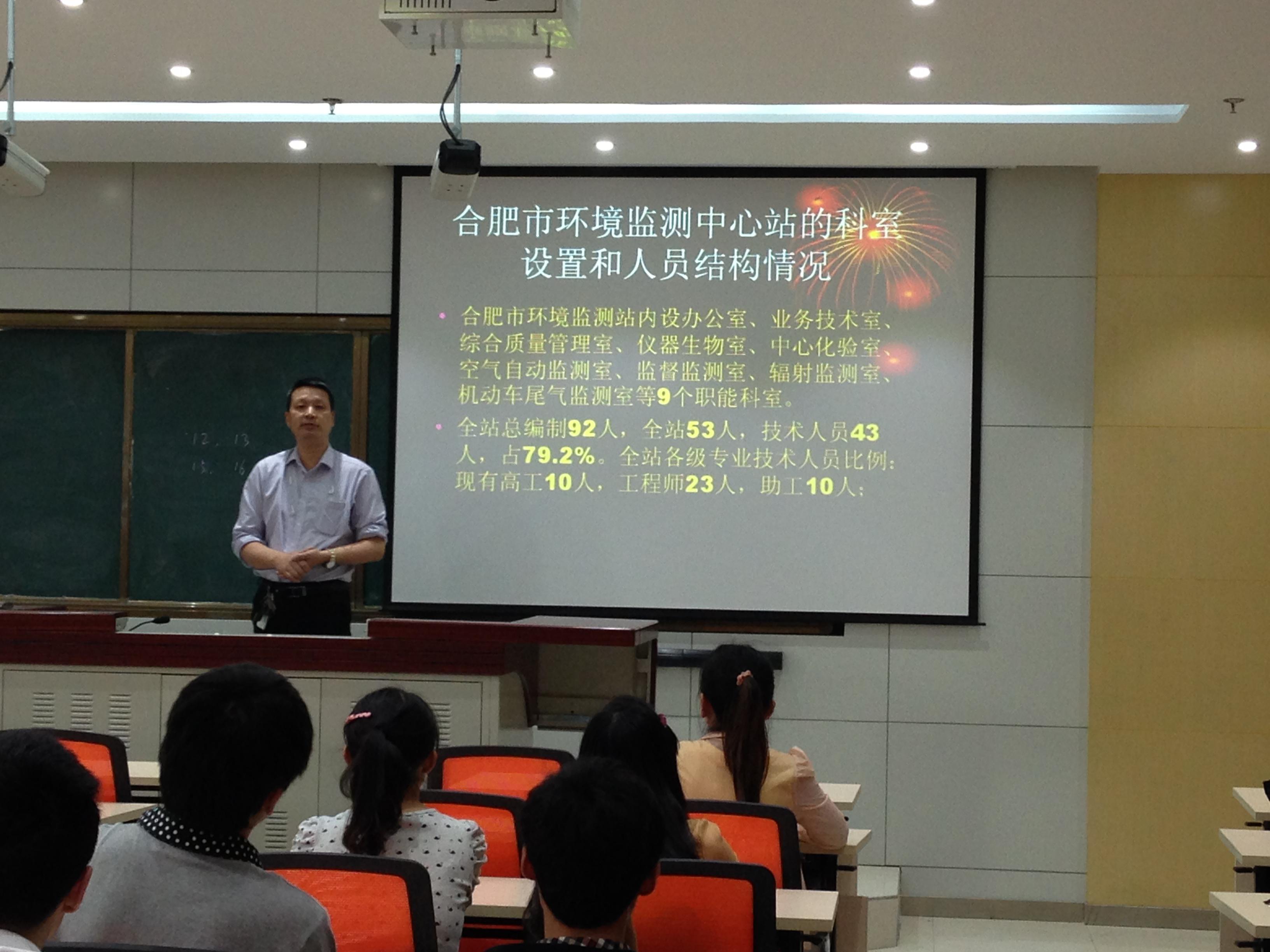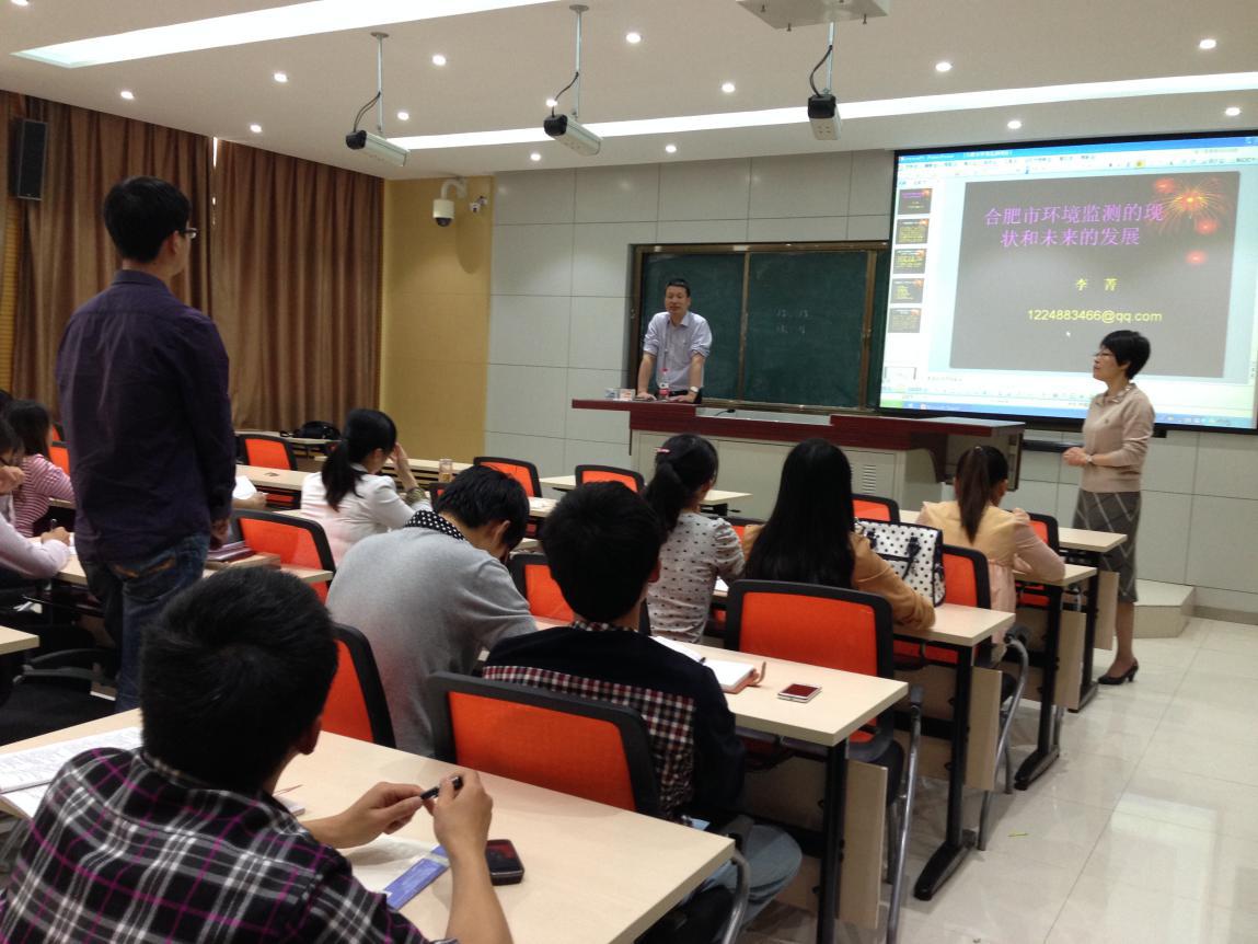 5月9日下午,“合肥市環(huán)境監(jiān)測的現(xiàn)狀和未來發(fā)展”的學(xué)術(shù)報(bào)告在我校35幢312報(bào)告廳舉行,報(bào)告會主講人是合肥市環(huán)境監(jiān)測中心站副站長李菁。我校環(huán)境工程專業(yè)研究生及部分導(dǎo)師到場聆聽。