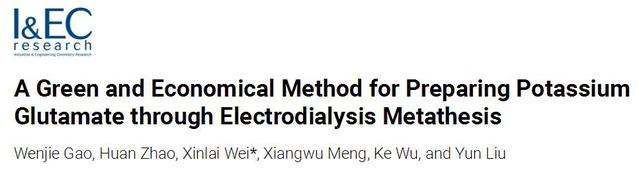 近日,我校為第一單位,2019級環境工程專業研究生高文杰(導師:吳克、衛新來)為第一作者的研究成果《A Green and Economical Method for Preparing Potassium Glutamate through Electrodialysis Metathesis》以封面文章的形式發表在國際化工領域重要學術期刊Industrial & Engineering Chemistry Research(IF:3.720)上。這是高文杰碩士期間的第四篇SCI論文,其它三篇分別發表在影響因子為4.106、7.312的期刊上,其中一篇被選為“編輯推薦”。